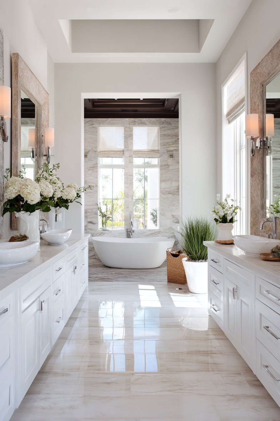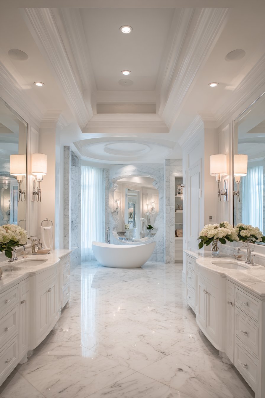 - Pair with white lacquer vanities for a glamorous aesthetic