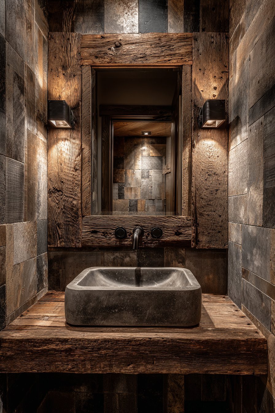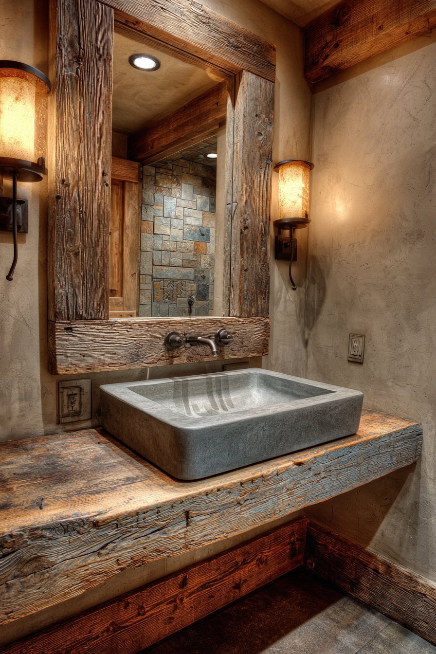 Carved limestone frames represent ultimate bathroom luxury. The natural stone’s weight requires substantial mounting support. Matching pairs create sophisticated symmetry in master bathrooms. The material choice complements marble and other stone surfaces.