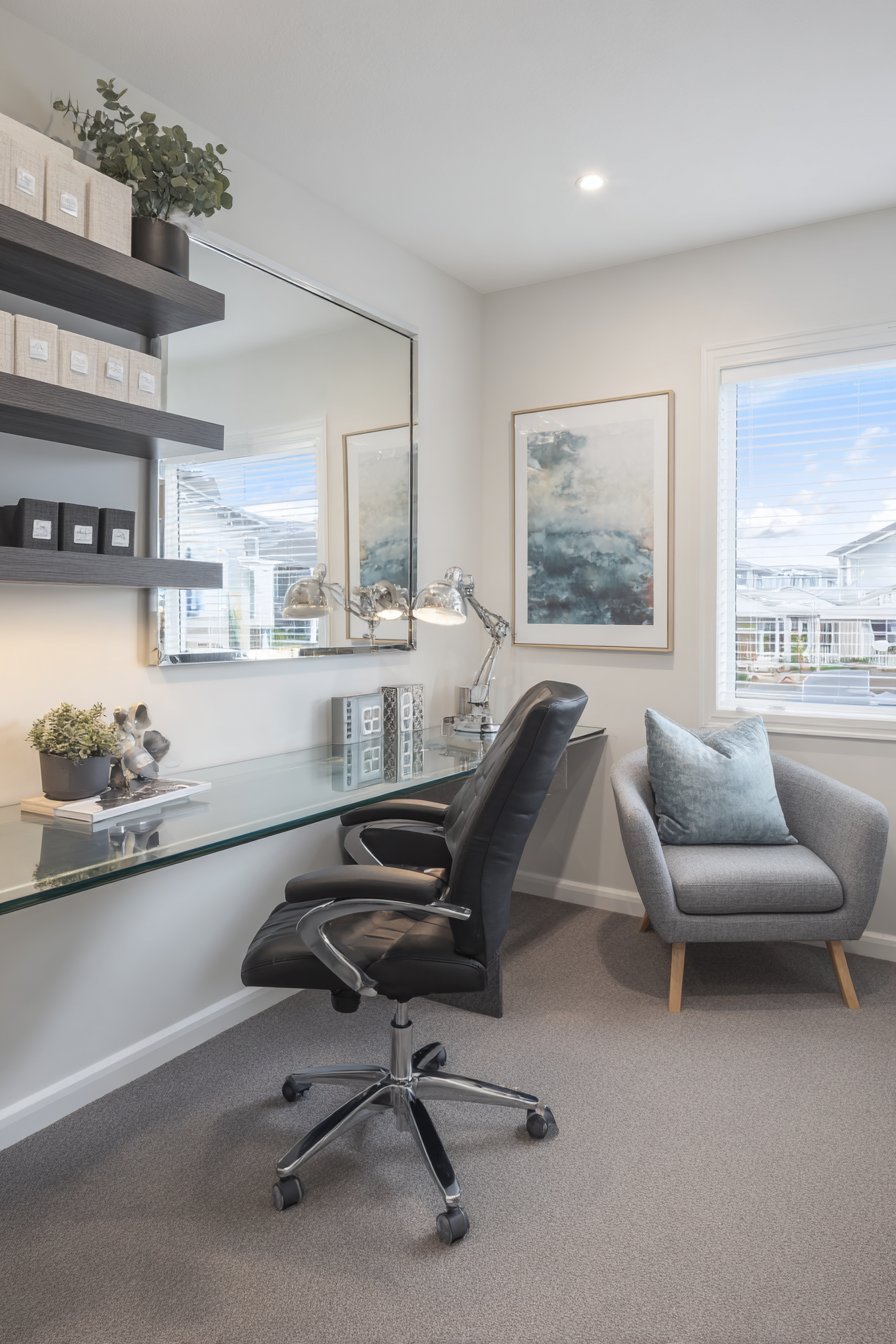 Chrome frames provide contemporary professional polish. The sleek finish suits modern home offices. This reflects light effectively in compact workspaces. The minimal design prevents distraction from work tasks.