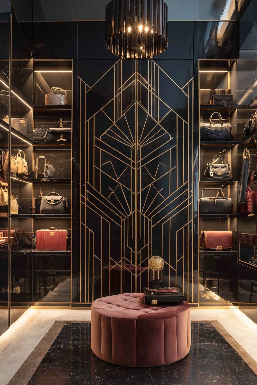 - Select geometric frames for Art Deco glamour in dressing spaces