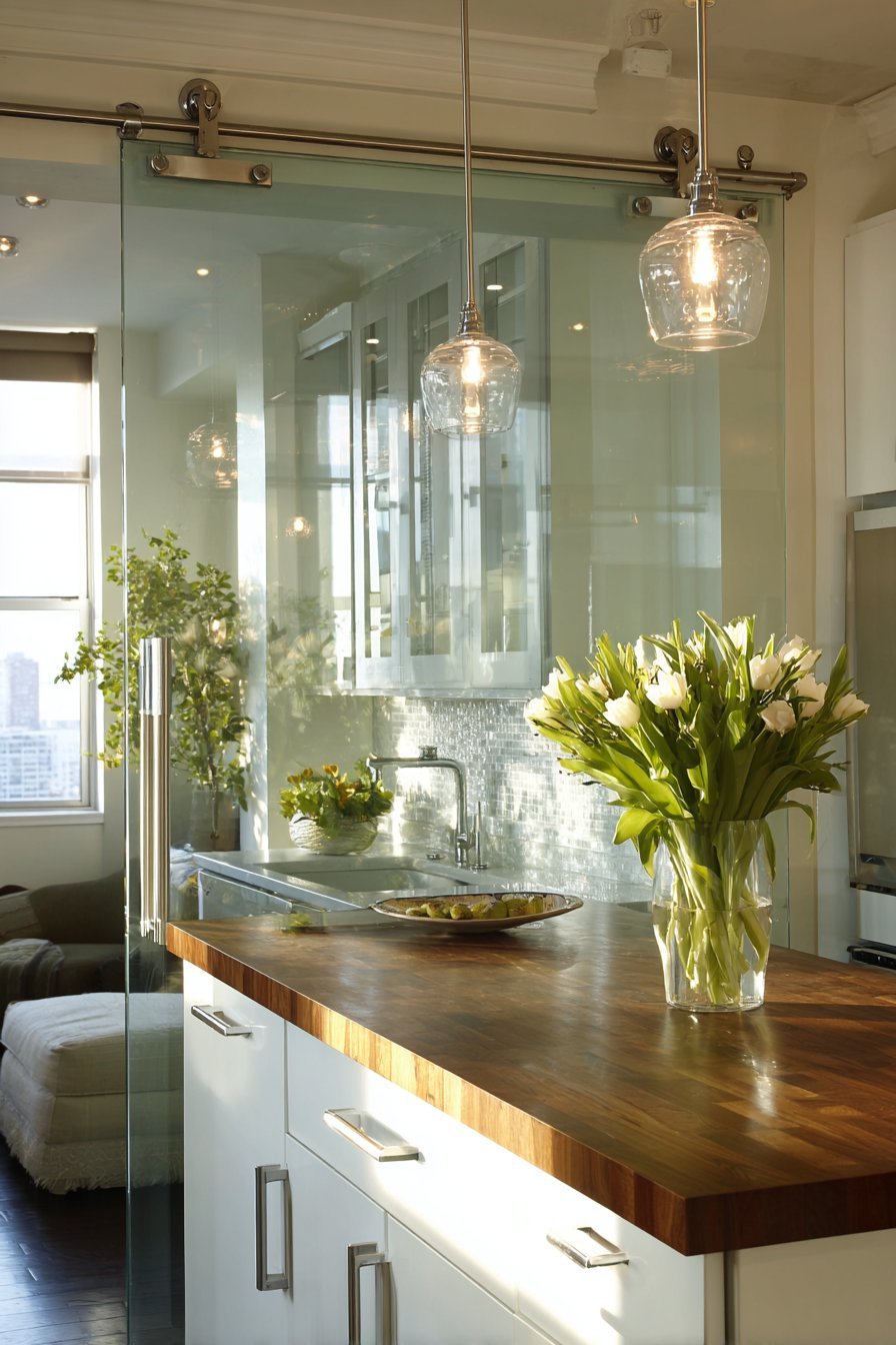 The designs showcase how glass doors solve spatial challenges creatively. Pocket doors maximize floor space in compact urban apartments. Bi-fold configurations create expansive openings from limited wall space. Sliding barn doors add character while maintaining traffic flow. Dutch doors provide versatility for various ventilation and privacy needs throughout the day.