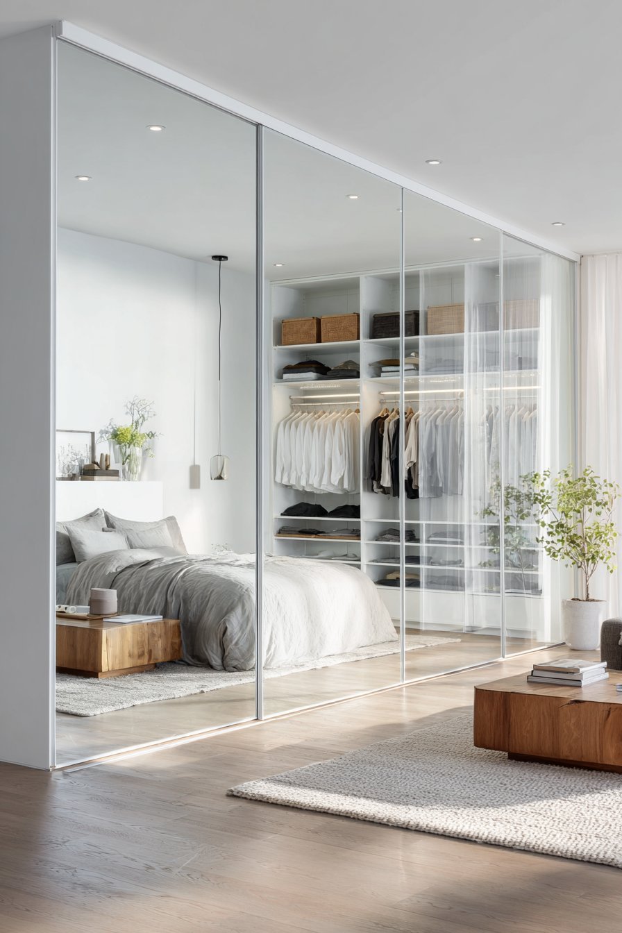 25. Scandinavian Bedroom Closet Glass Doors
