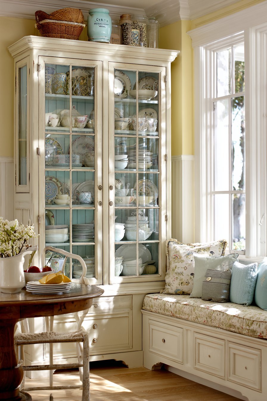 27. Cottage-Style Glass Cabinet Display