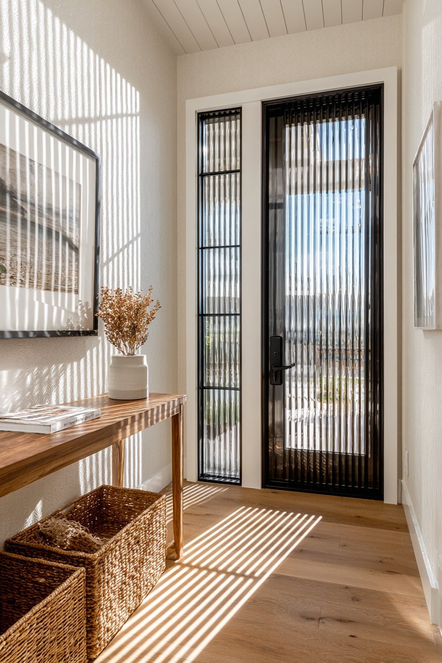 4. Scandinavian Frosted Glass Entry Door with Vertical Striping