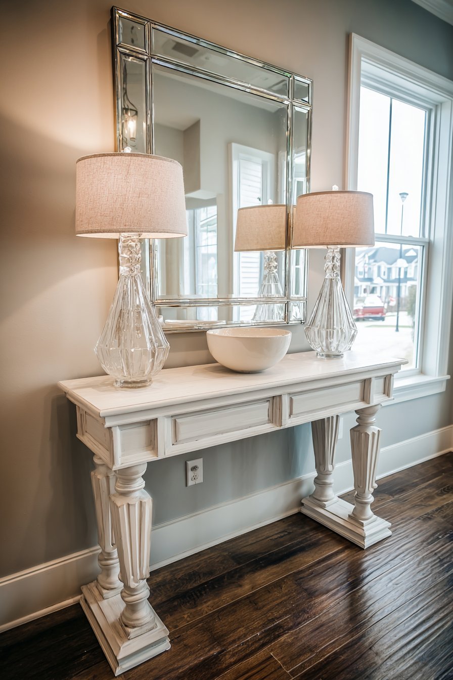 - Position entryway mirrors at heights that allow full outfit viewing