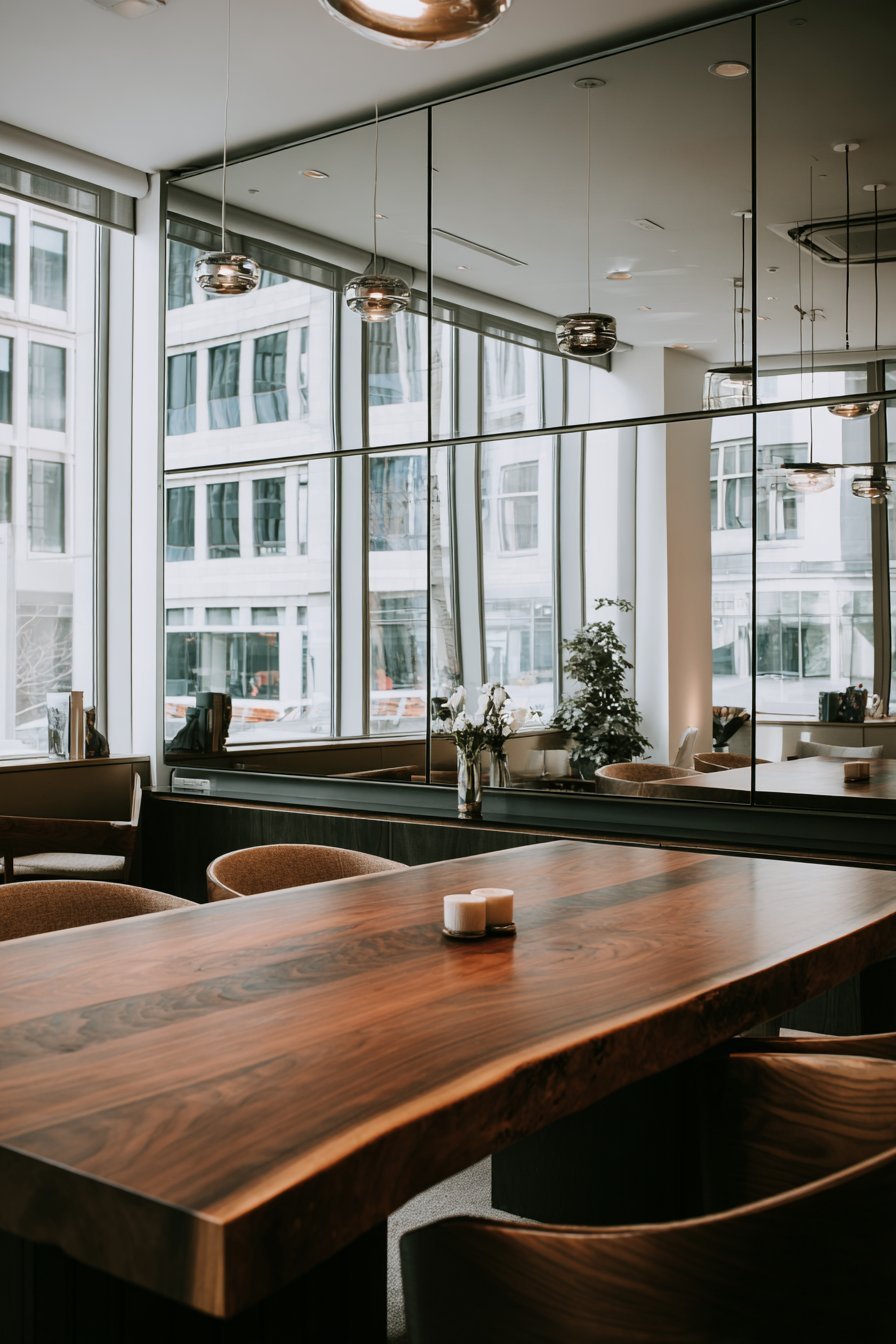 - Position mirrors to reflect dining tables and natural light sources
