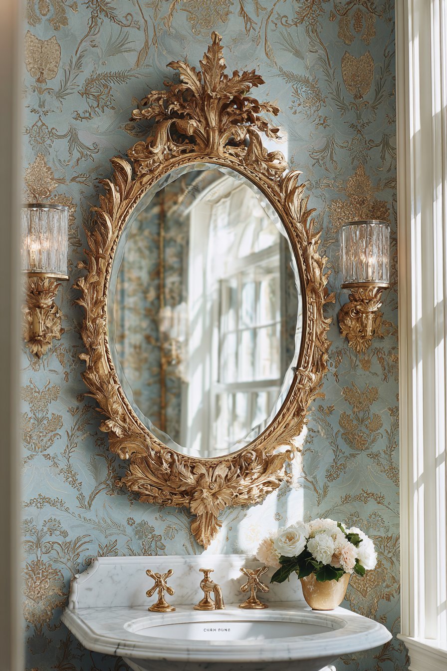 - Pair gilded frames with damask or floral wallpapers