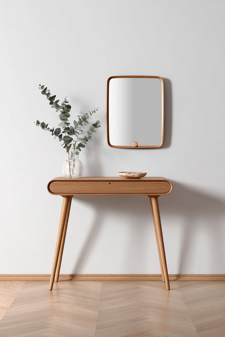 8. Scandinavian Oak-Framed Hallway Mirror