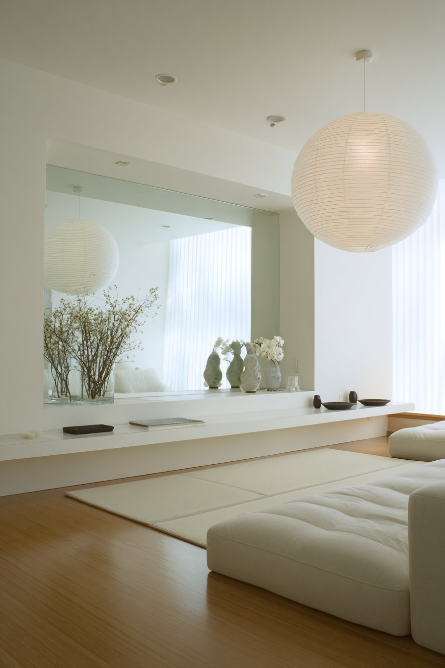 The monochromatic palette allows architectural elements to shine. The mirror reflects the space’s geometric precision perfectly. Every element demonstrates commitment to minimalist discipline. The design achieves beauty through restraint and precision.