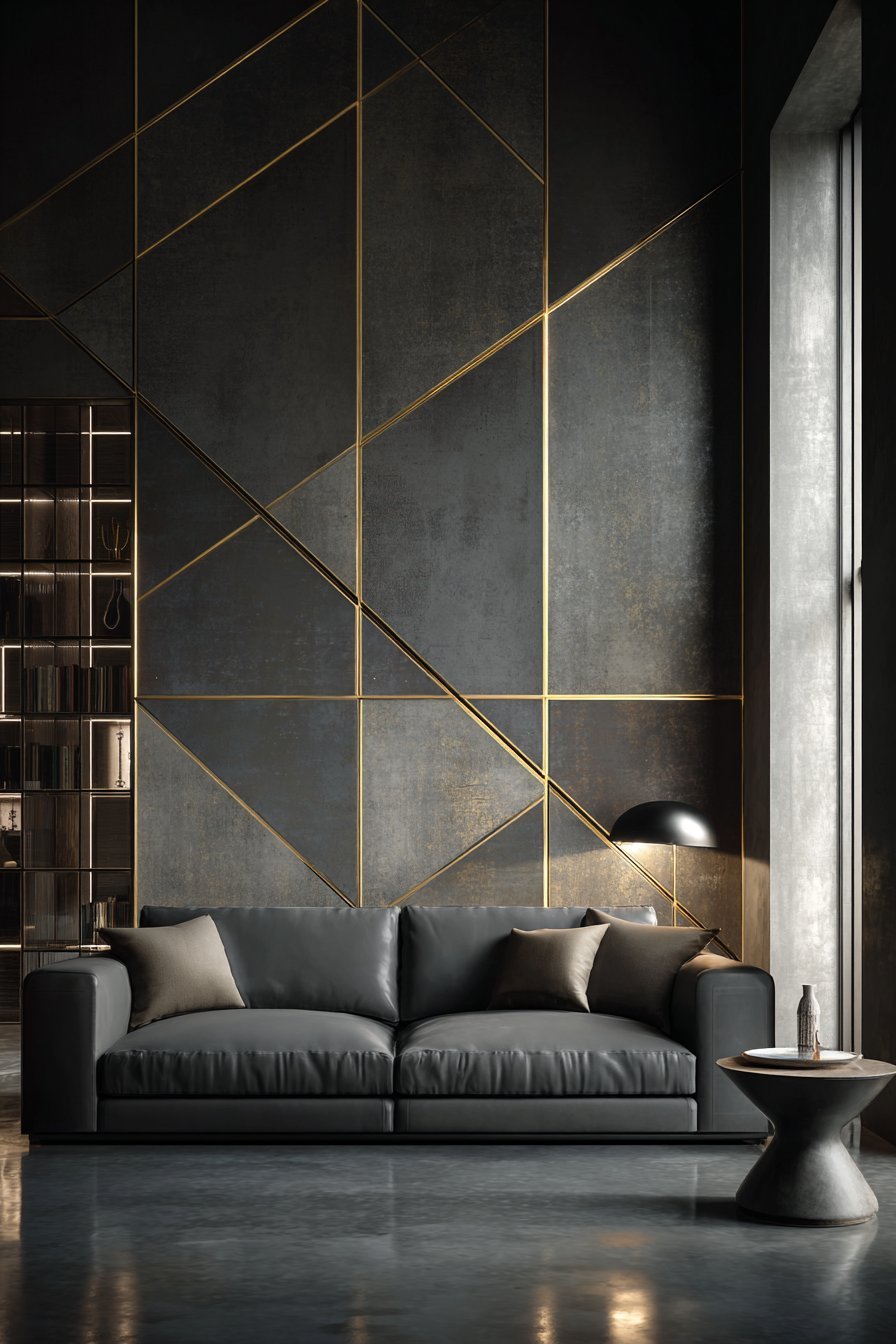 The grid pattern creates architectural interest through repetition and precision. Each beveled panel adds subtle dimensional detail. The chrome channels provide clean separation without visual weight. This creates luxurious focal point with refined restraint.