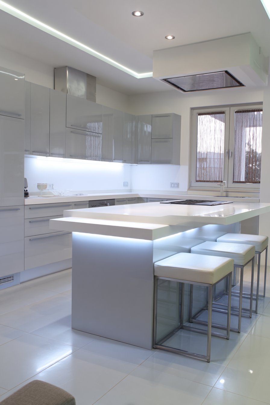 - Add under-cabinet LED lighting for functional task illumination