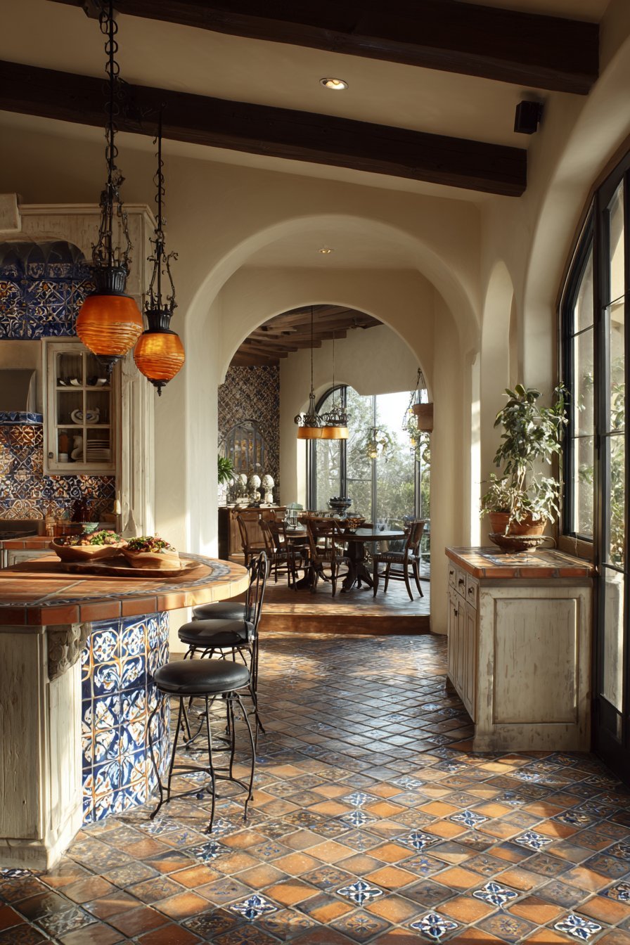 - Choose terracotta flooring for authentic, lived-in warmth