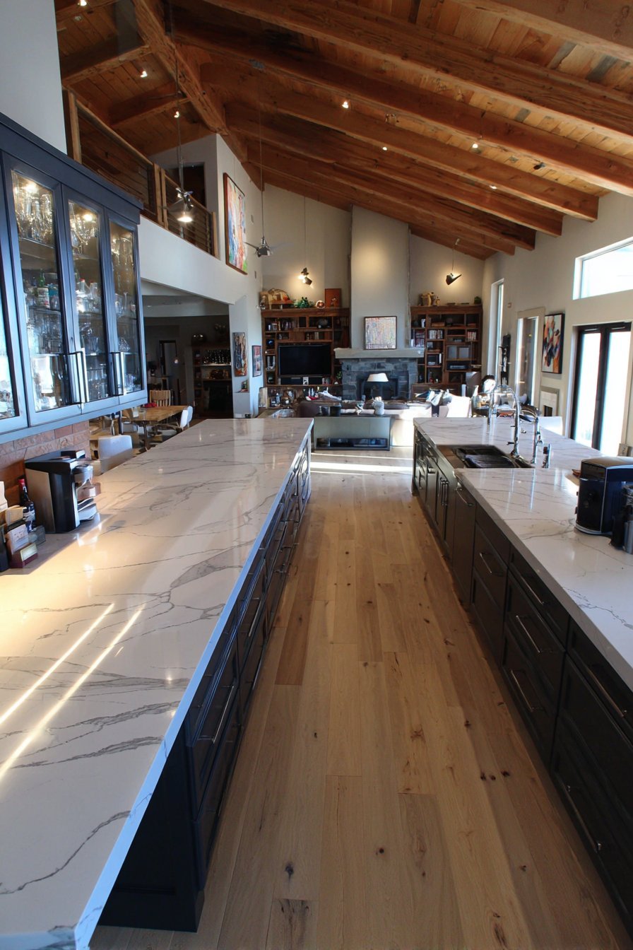 - Select marble-look quartz for a maintenance-free luxury appearance