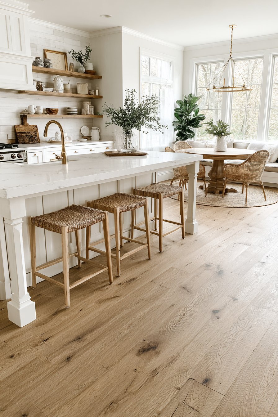 - Choose whitewashed oak flooring for light, airy foundation